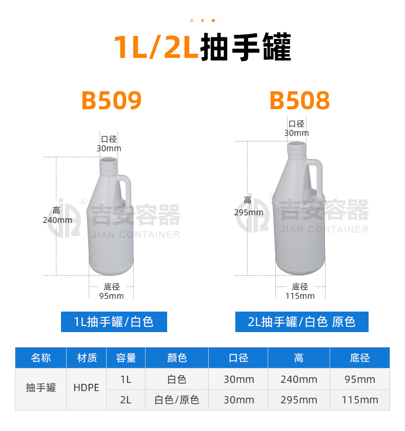 東莞市吉安包裝容器有限公司創(chuàng)立于2000年8月1日,是中國知名品牌企業(yè)。已通過ISO 9001質(zhì)量管理體系資質(zhì)認證,加入了中國中空協(xié)會,并獲得《中國知名品牌》,《國家標準合格產(chǎn)品》,《全國重合同守信用AAA級企業(yè)》,《質(zhì)量.服務(wù).誠信AAA企業(yè)》等榮譽稱號。根據(jù)材質(zhì)的不同,我們的產(chǎn)品分為塑料容器、鐵質(zhì)容器、鋁材容器、玻璃容器、紙質(zhì)容器等五大類。按產(chǎn)品的名稱分為塑料桶、塑料瓶、包裝桶、涂料桶、機油桶、油脂桶、化工罐、膠水瓶、鐵桶、鐵罐、鋁瓶、鋁罐、阻隔瓶、高阻隔瓶等,容量從3ML至1000L多種規(guī)格,多種款式。適合包裝的產(chǎn)品包括:化學(xué)試劑、化工原料、化工助劑、飼料添加劑、油墨、油漆、樹脂農(nóng)藥、日用化學(xué)品、聚氨脂、膠粘劑,廣泛應(yīng)用于化工、建筑、食品、醫(yī)療、生物等各領(lǐng)域。
